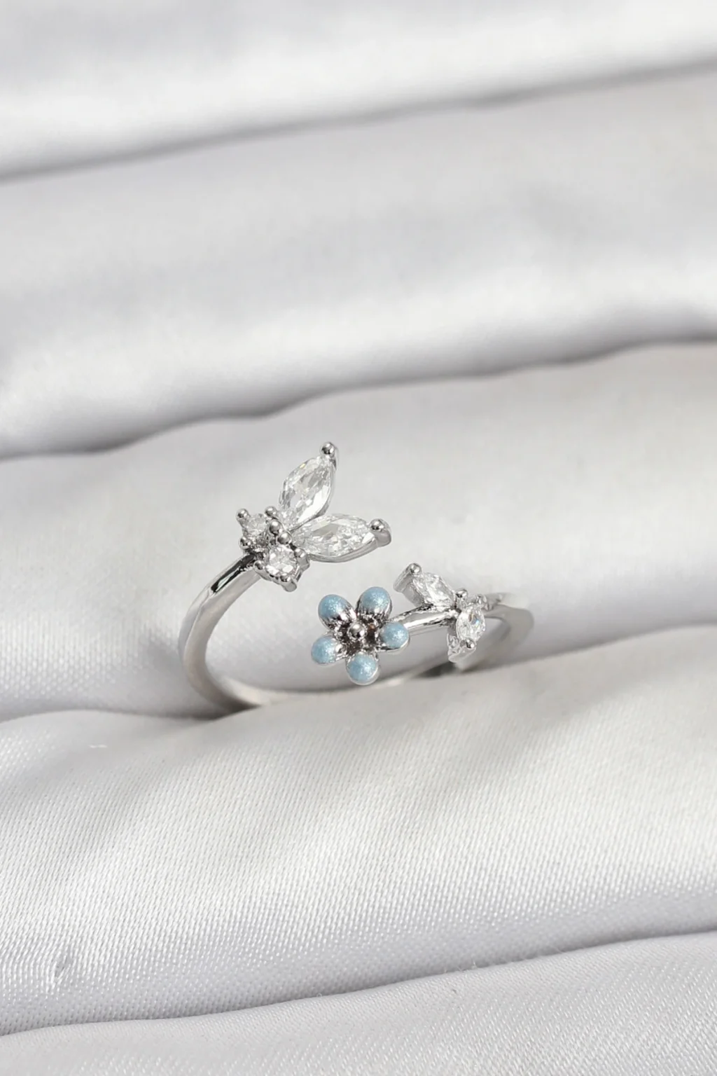 Pirinç Gümüş Renk Kelebek Model Kadın Yüzük